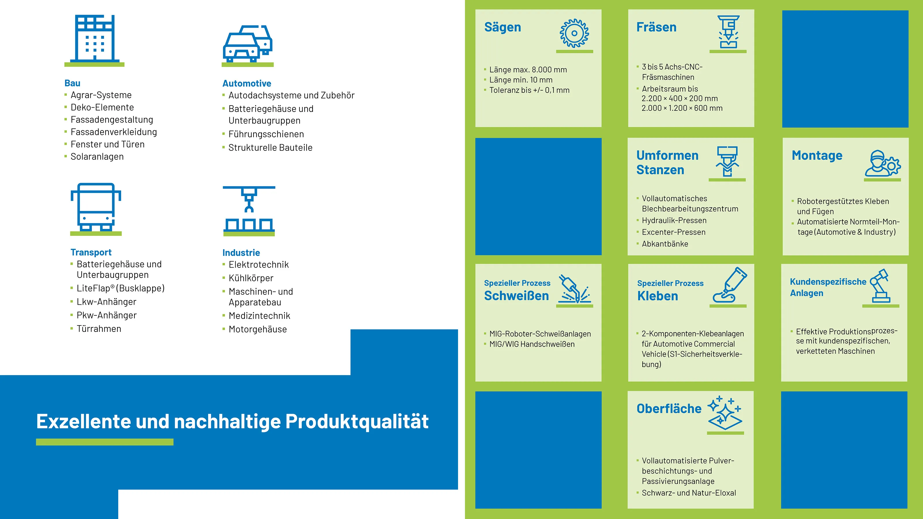 apt begleitet seine Kunden entlang der gesamten Wertschöpfungskette und verbindet dabei hohe Werkstoffkompetenz mit effizienter industrieller Fertigung. Das Unternehmen beliefert nationale und internationale Kunden aus Industrie, Automotive, Transport und Bau und positioniert sich als verlässlicher Partner für maßgeschneiderte Aluminiumlösungen mit hoher Fertigungstiefe.
